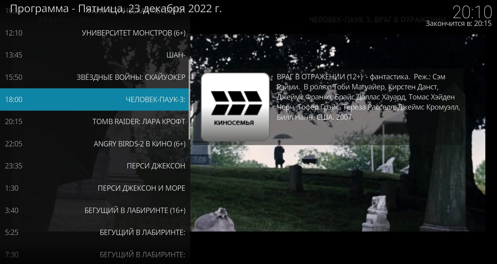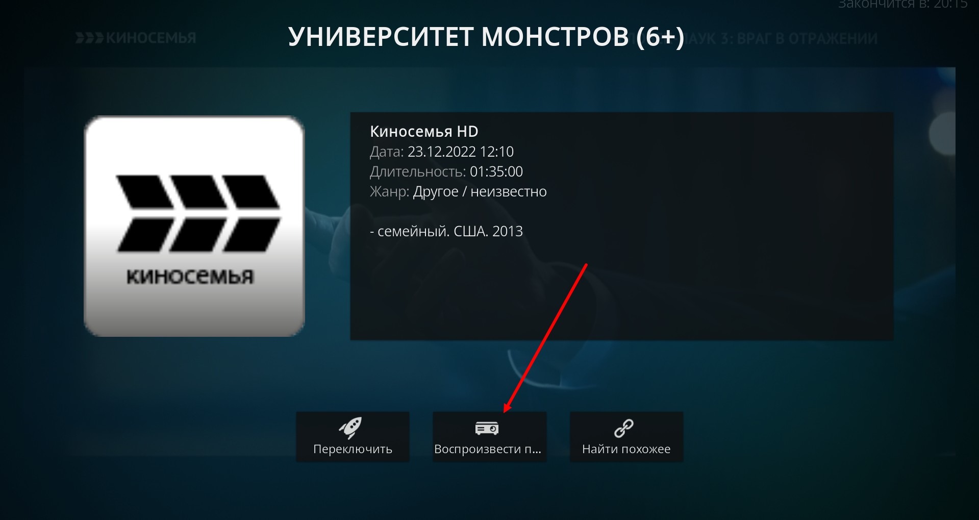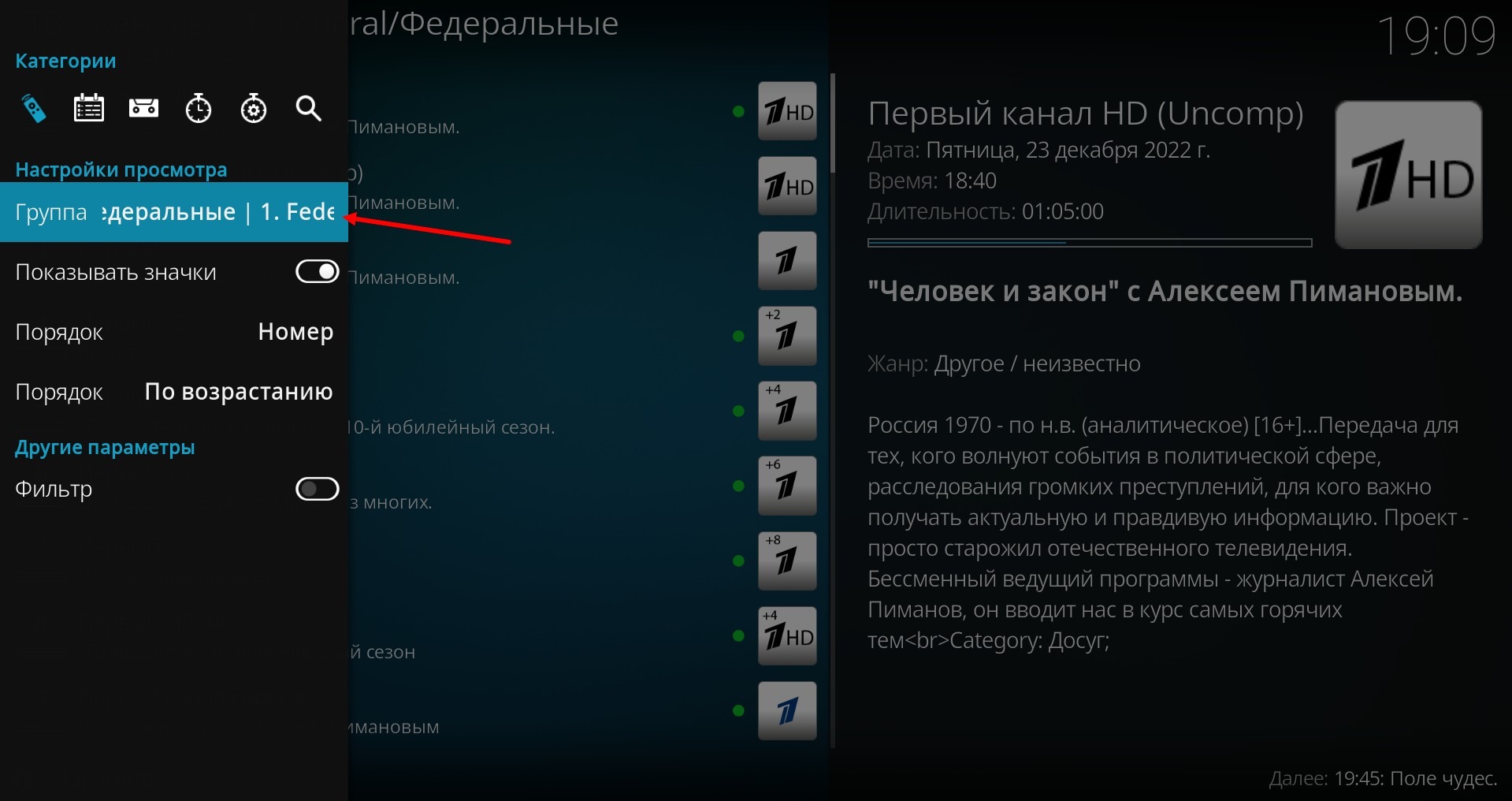 Es öffnet sich ein Fenster mit dem Programm des Kanals, unten (im Verhältnis zur aktuellen Sendung) ist das, was später sein wird, oben - archivierte Sendungen.