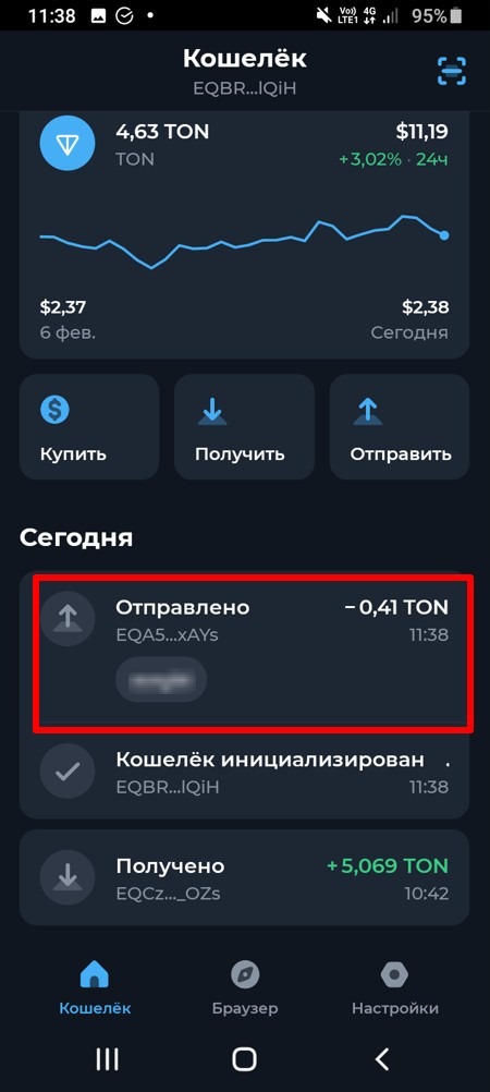 And this is the goal you wanted to achieve - money from the TonKeeper wallet went to your balance in the tv.team.