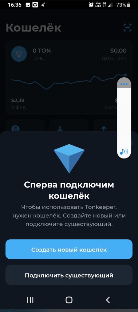 For example, let's top up the balance with $1 using the TON payment aggregator through the Tonkeeper application.