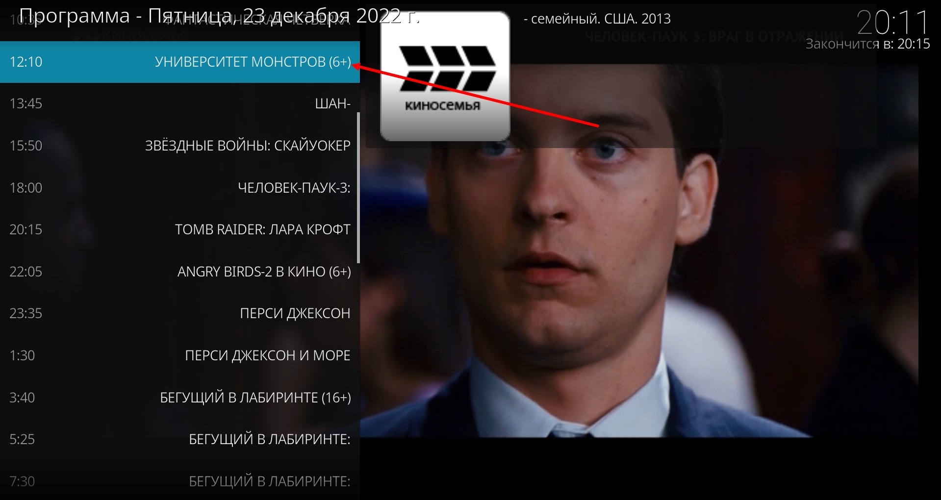 A window with the channel program opens, there are archive broadcasts at the top (relative to the broadcast that is going now), and what will be later at the bottom.