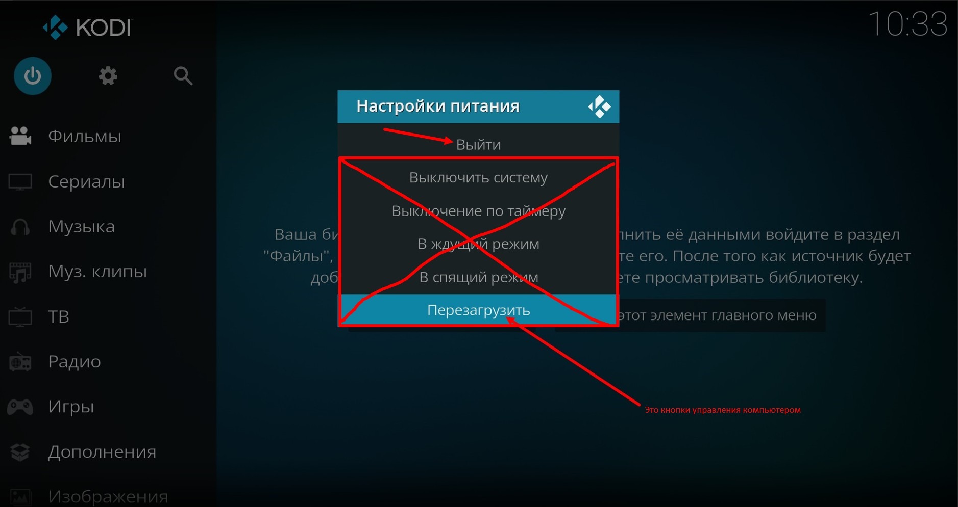 Restart Kodi, for this, exit the application by clicking on the shutdown icon