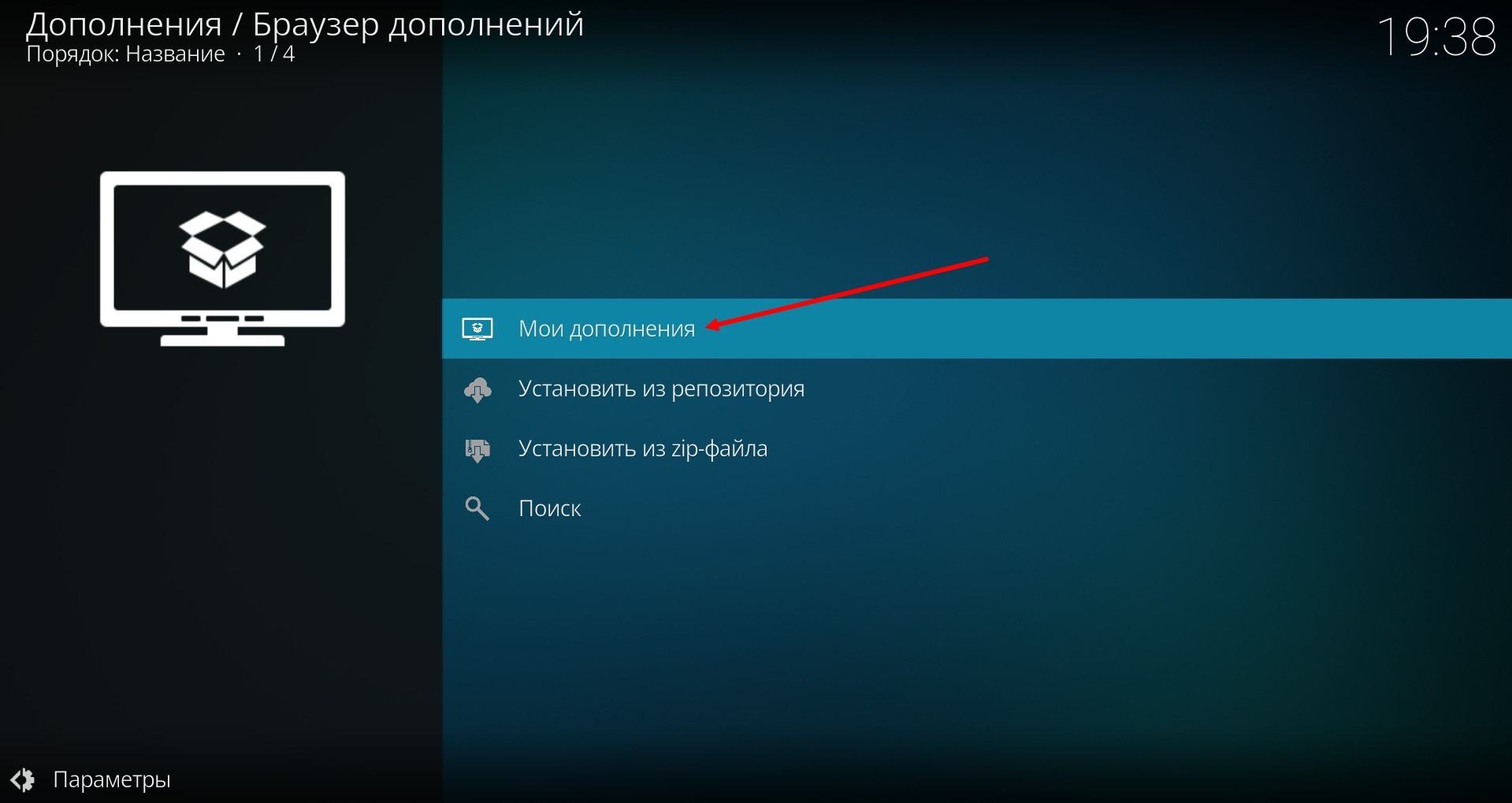 To do this, press Esc (on a computer) or the "Back" button (on other devices) to return to the media player's main menu. Here, select the Add-ons section.