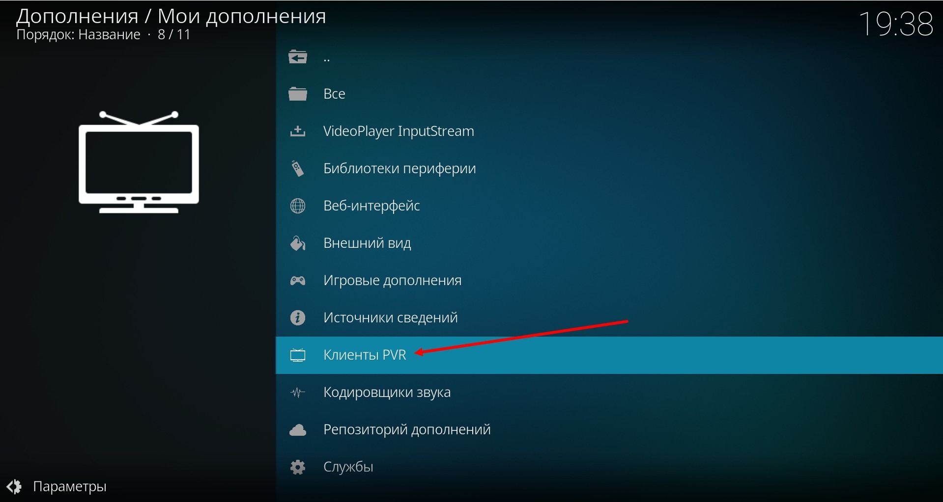 and in the opened list, find PVR IPTV Simple Client (or in new versions it is called IPTV Simple Client).