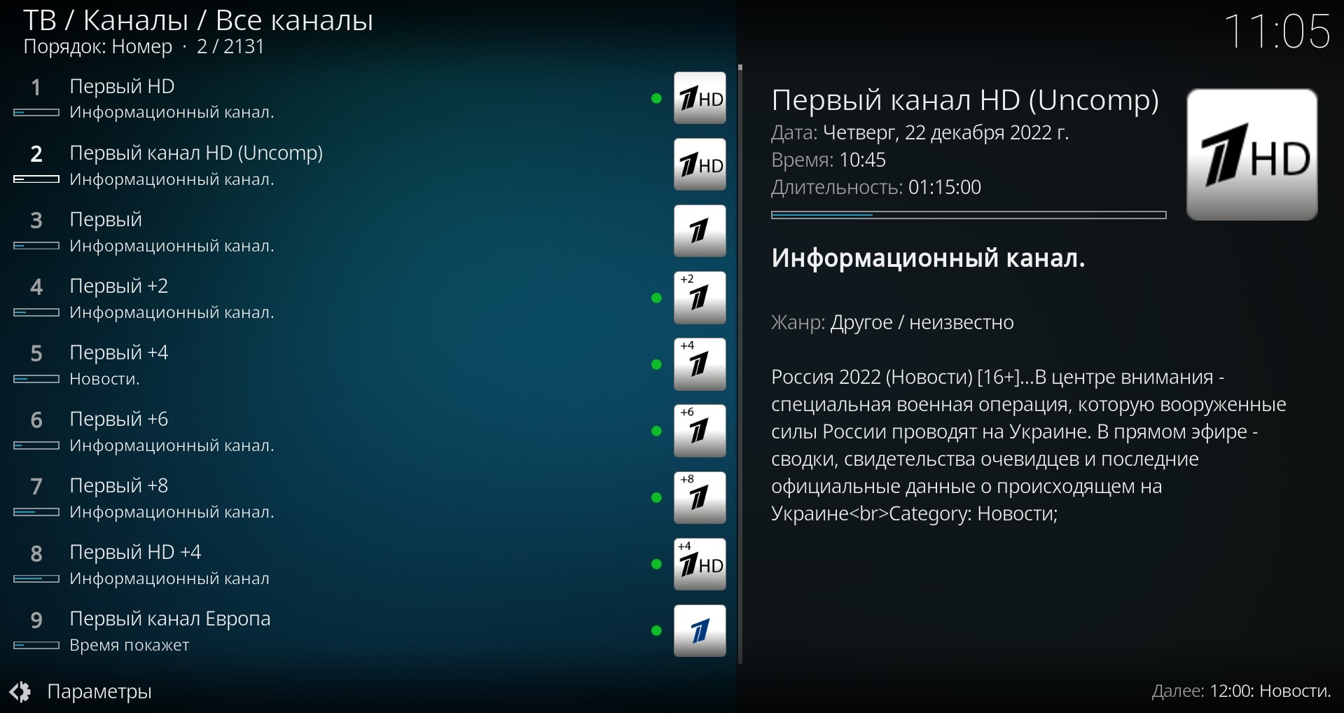 Wait for a while, the client is loading, as well as the channel list and TV program (the information is in the top right corner).