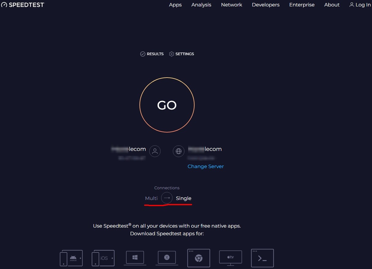 Для этого переключаем спидтест в режим Single