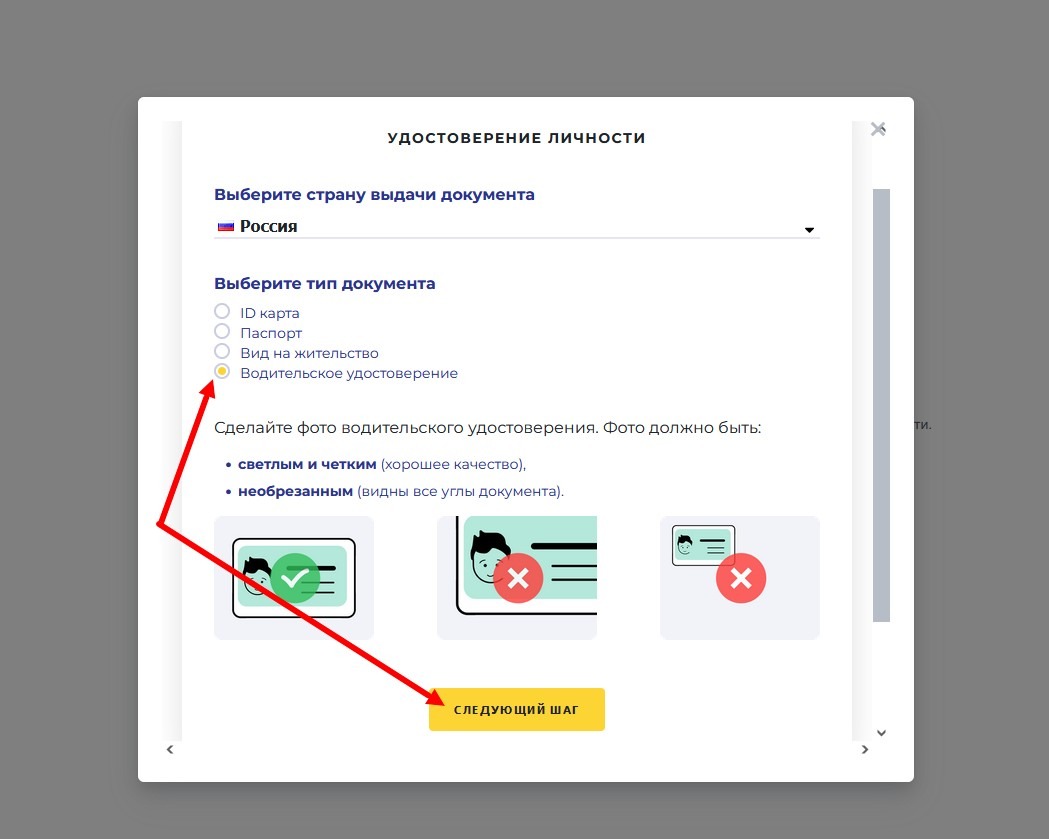 Обязательно пройдите верификацию по одному из предложенных, для вашей страны, вариантов. Для России я выбирал по паспорту, а потом, когда по паспорту у меня не получилось, выбрал по водительскому удостоверению.