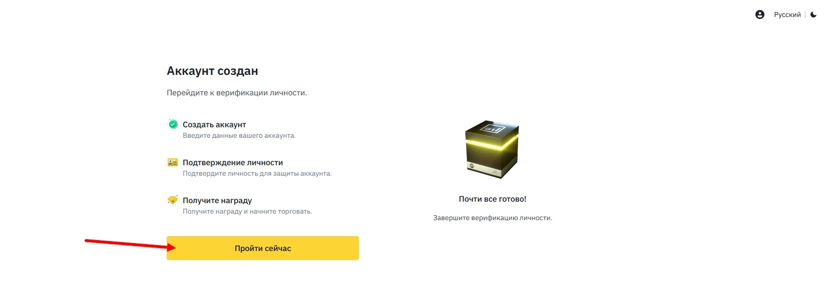 Вам будет предложено пройти верификации личности, без этого работа на бинансе не возможна.