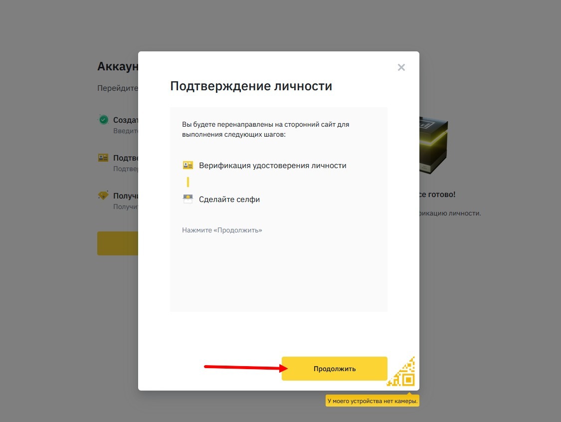 и если с документами проще, их можно загрузить вручную из сохраненных ранее файлов-сканов (у меня их нет), то для селфи все равно нужна камера; пришлось установить приложение бинанс на телефон и начав верификацию на компе, сканировать штрих код и продолжать верификацию на телефоне (на телефоне в приложении есть значок для сканирования штрихкодов);